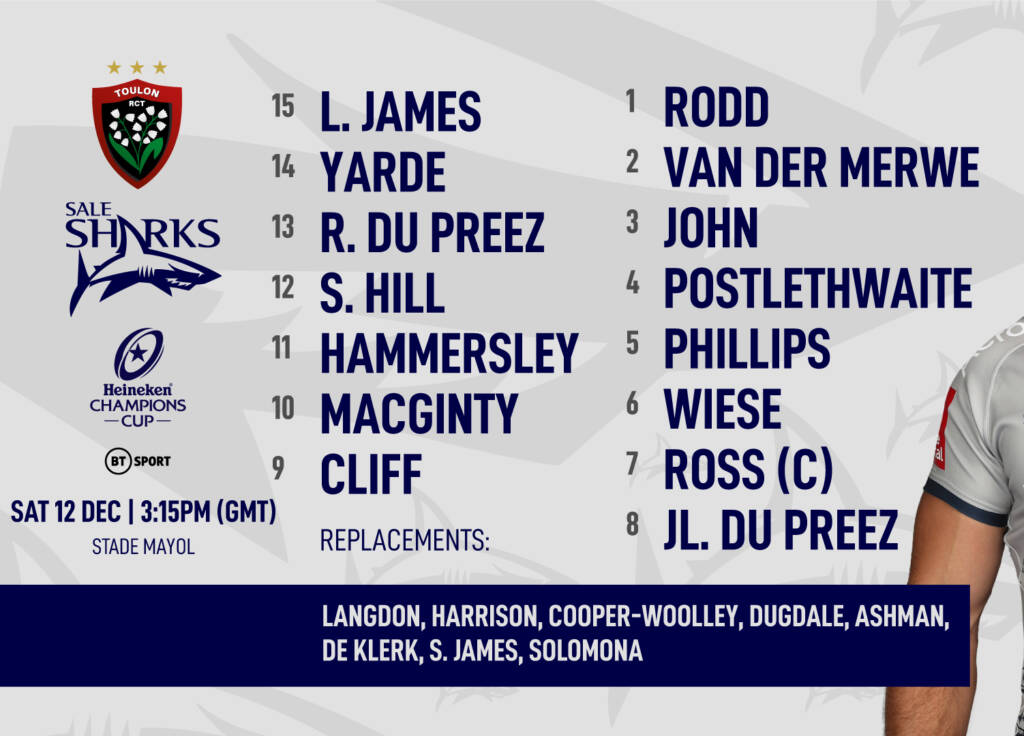 Sale Sharks have named their squad to face RC Toulon in their opening Heineken Champions Cup fixture of the 20/21 season.