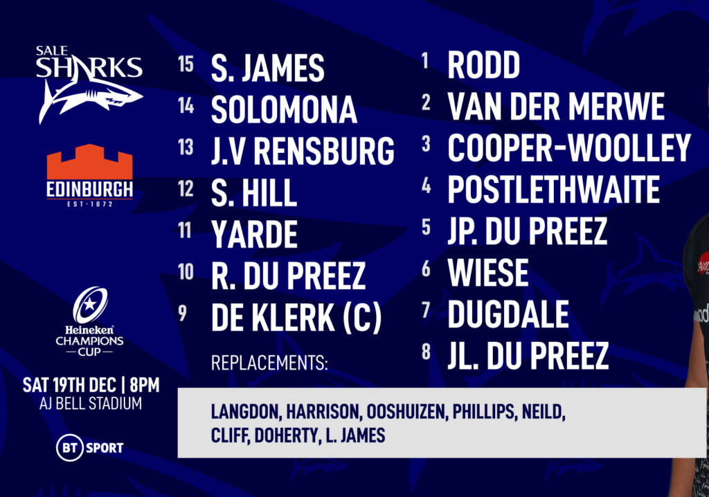 Team News – Sale Sharks v Edinburgh Rugby