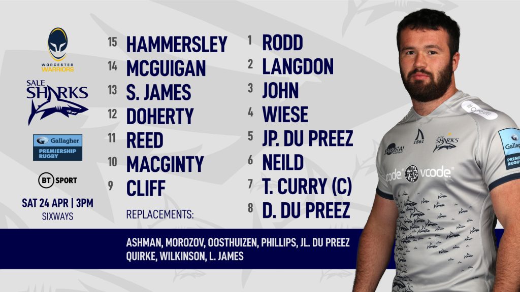 Sale Sharks have named their side to face Worcester Warriors in round seventeen of the Gallagher Premiership this weekend. The Sharks head to Sixways Stadium on Saturday in search of their first away victory over the Warriors since the 2017/18 Premiership season. (Kick-off 3:00pm – Live on BT Sport Extra)
