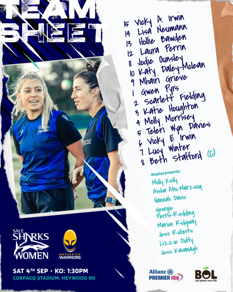 TEAM NEWS – Sale Sharks Women v Worcester Warriors Women