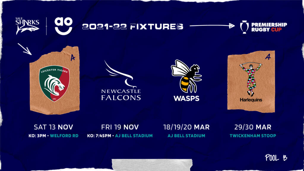 The competition’s three pools and opening two rounds of fixtures were today confirmed by Premiership Rugby, with the Sharks taking on the Tigers at Welford Road on Saturday 13 November, before returning to the AJ Bell Stadium to face northern rivals Newcastle Falcons on Friday 19 November.