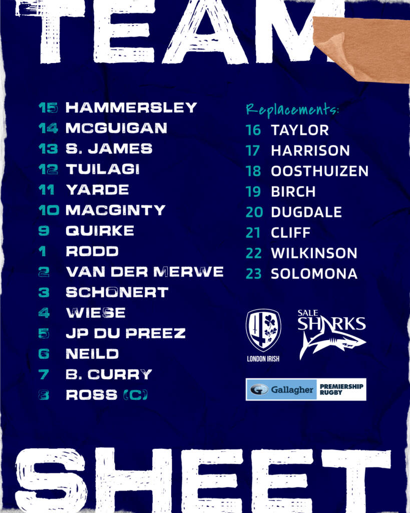A new-look Manu Tuilagi starts again in the centres and will provide the Sharks with plenty of power and prowess in the backline. The British and Irish Lion is joined by the ever-present Sam James in the midfield once again this week.