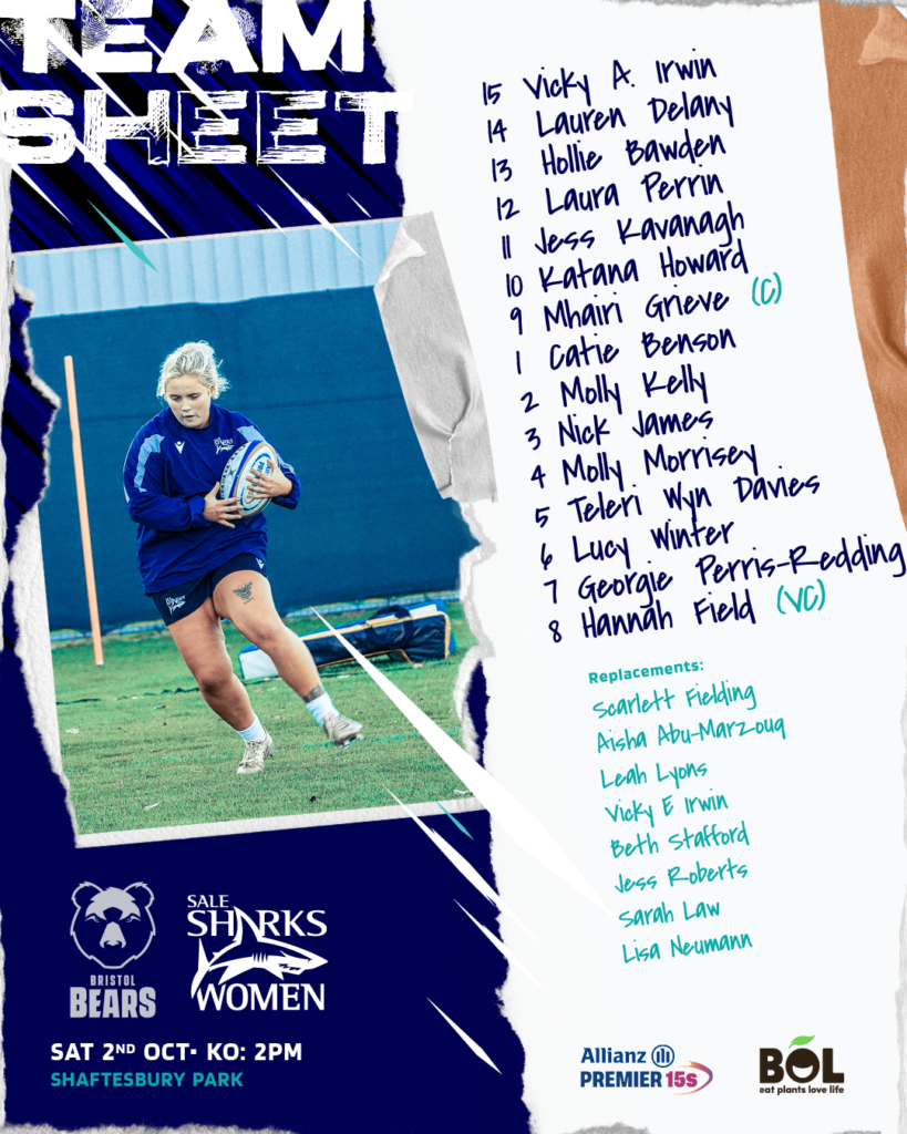 There are debuts for American signings Katana Howard and Nick James at fly-half and prop, while fellow countrywoman Catie Benson is given her first start for the Sharks.