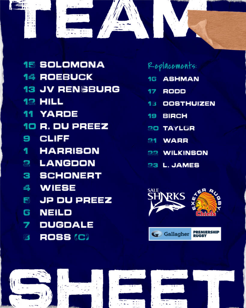 TEAM NEWS – Sale Sharks v Exeter Chiefs