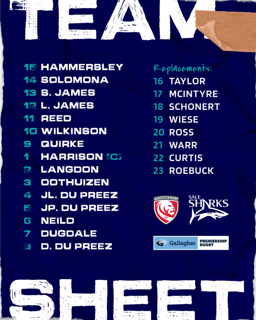 Jean-luc and Daniel du Preez return to action for Sale Sharks as Alex Sanderson continues to rotate his squad heading into round four of the Gallagher Premiership. The Sharks’ Director of Rugby makes 10 changes to his starting XV as he prepares his side for a trip to Kingsholm on Saturday.