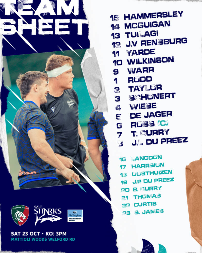 TEAM NEWS – Leicester Tigers v Sale Sharks