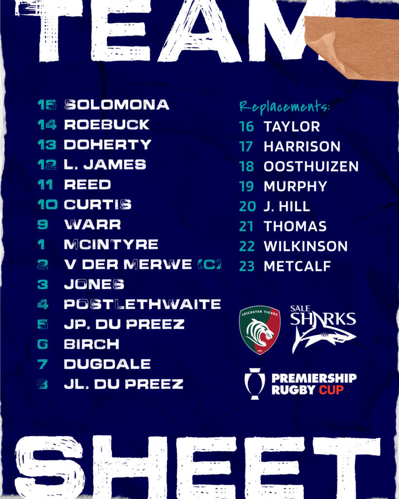 Alex Sanderson has named his side to face Leicester Tigers in round one of the Premiership Rugby Cup as Sale Sharks prepare to start their title defence at Mattioli Woods Welford Road on Saturday.