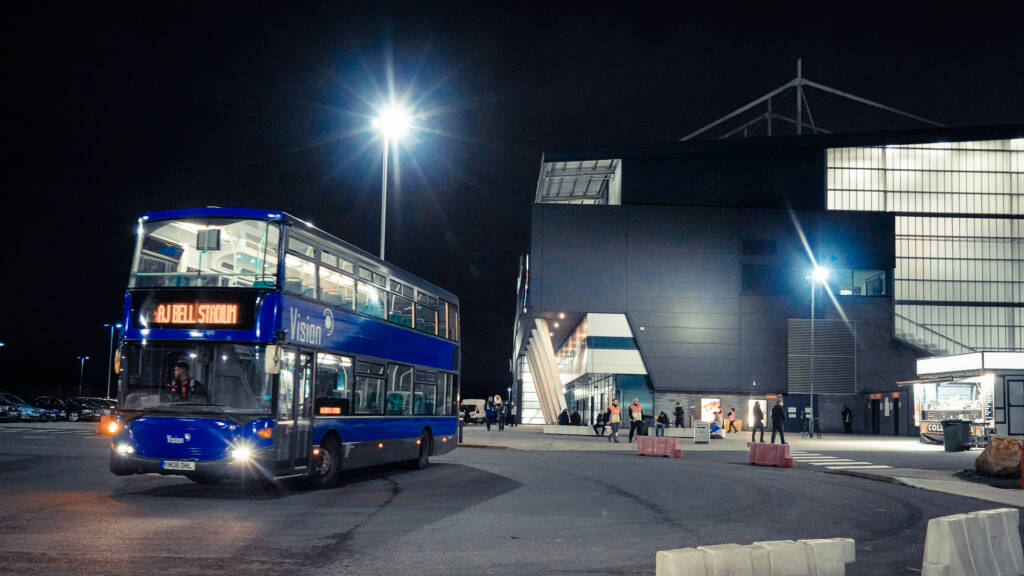If you’re travelling from Didsbury, Parrswood or Cheadle you can make use of the Stockport shuttle bus. This will run as follows: Mercian Way – East Didsbury at 1:35pm, Parrswood at 1:45pm, The Red Lion Cheadle at 1:55pm, and all pickups will be from the drop-off point 20 mins after the final whistle. This can be pre-booked HERE.