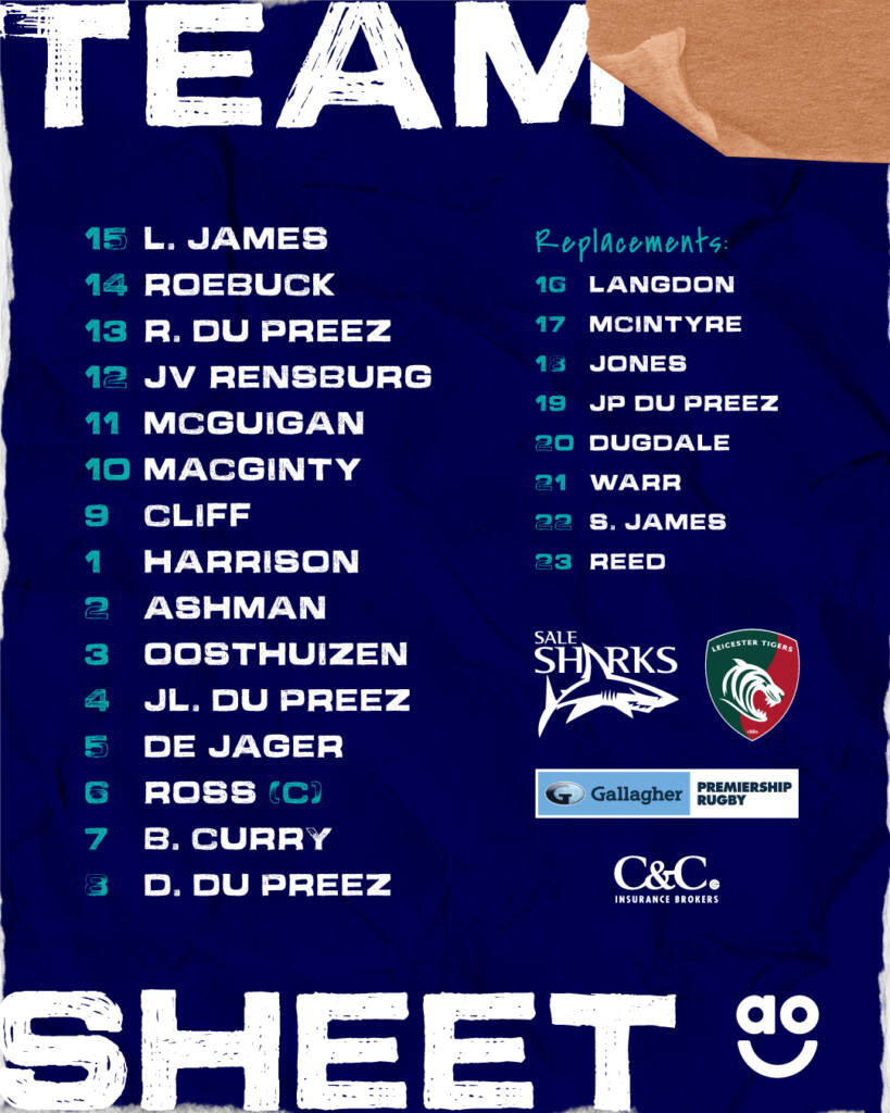TEAM NEWS – Sale Sharks v Leicester Tigers