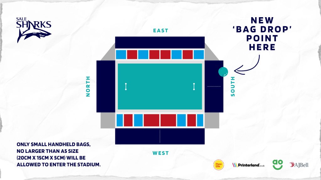 To ensure that the AJ Bell Stadium is a safe, secure environment, all bags will be subjected to a physical and/or visual search at entrances to the stadium.