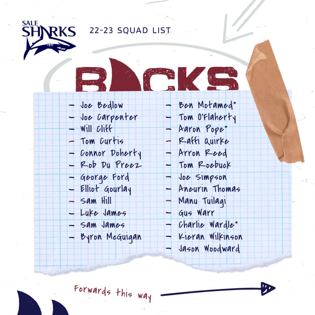 Sale Sharks can confirm the club’s senior playing squad to compete in the 2022/23 Gallagher Premiership and Heineken Champions Cup.