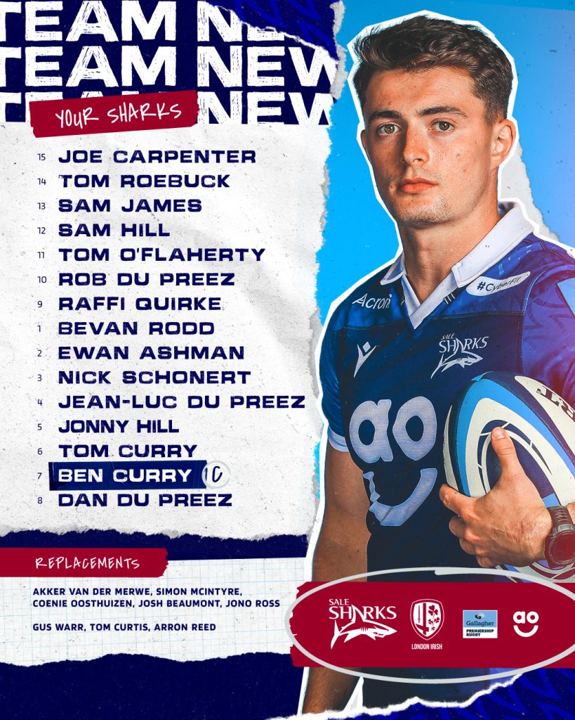 England star Raffi Quirke returns to the Sharks’ starting line-up for the first time in six months and Sam Hill makes his first Premiership start this season as Alex Sanderson’s men go in search of a fifth successive league win against London Irish under the Friday night lights at the AJ Bell Stadium (Friday, October 14, 7.45pm KO – live on BT Sport).