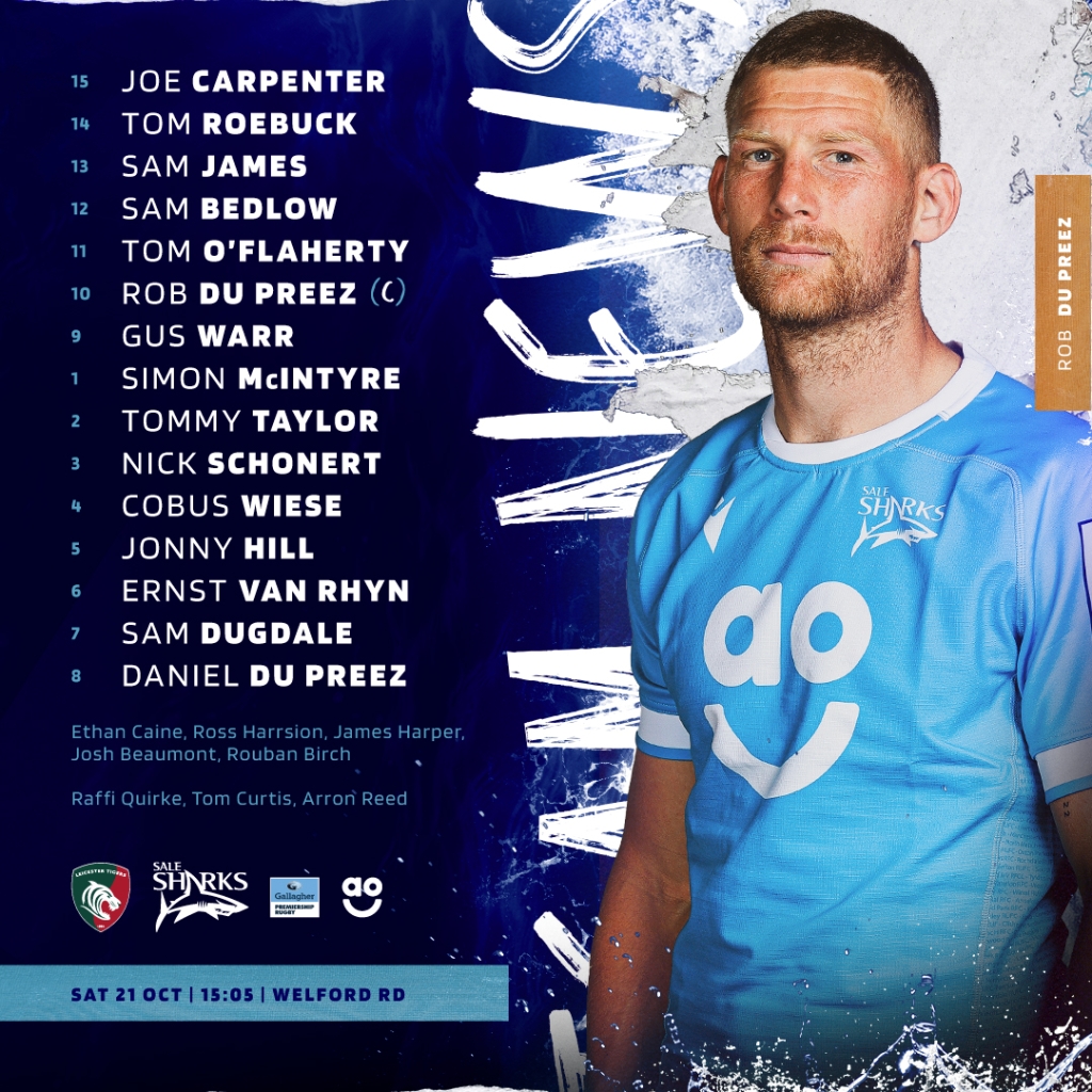 Cobus Wiese makes his first Sharks start in more than seven months while Gus Warr gets the nod at scrum-half as Alex Sanderson makes two changes to his XV to face Leicester Tigers on Saturday in round two of the Gallagher Premiership (live on TNT Sports, 3.05pm KO).