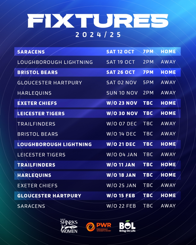 Sale Sharks Women will kick off the 24/25 Premiership Women’s Rugby (PWR) season with a bye weekend followed by a home clash with Saracens, it was revealed today.