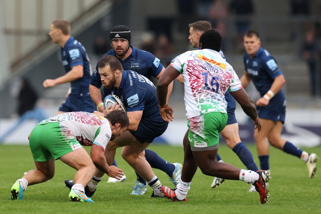 The fly half soon doubled Sale’s points tally with another simple penalty, this one the product of Hyron Andrews plucking a Quins lineout, but it was Quins who registered the first try of the match, a five meter maul executed clinically to allow hooker Jack Walker to flop over.