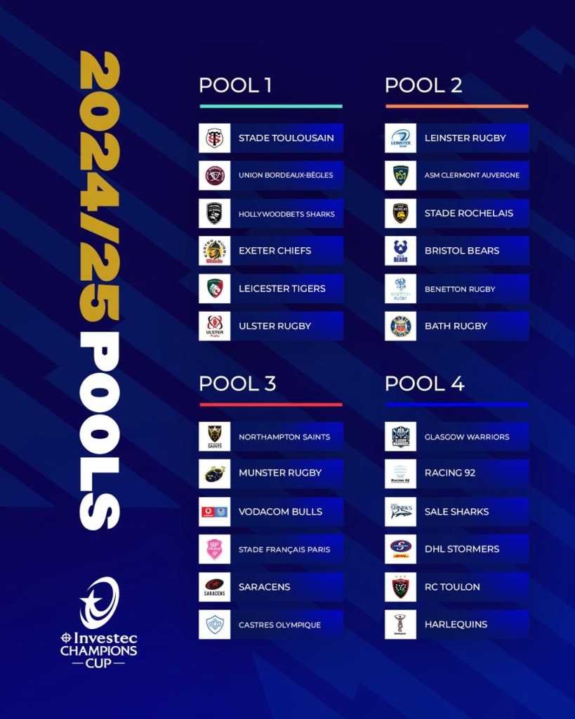• 24 clubs – eight from the TOP 14, eight from the BKT United Rugby Championship (URC), and eight from the Gallagher Premiership – have been drawn in four pools of six.