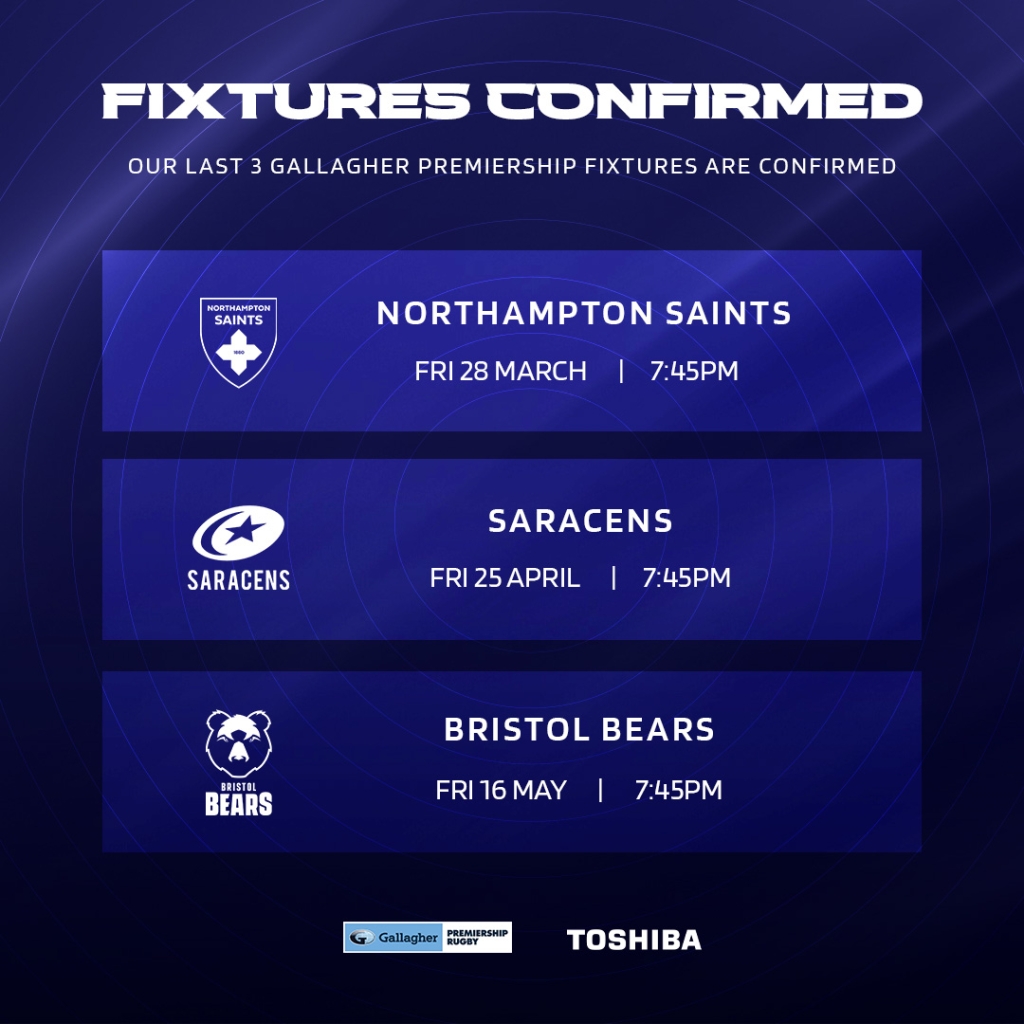 Premiership Rugby can confirm the fixtures and broadcast information for Rounds 12 to 18 of the Gallagher Premiership season.