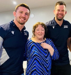 Amy: “Since 2012, my sister Beth was dragged (not kicking and screaming) to the annual supporter dinners with my Mum, it was an absolute highlight for her and we all loved seeing the pictures over the years of her meeting players, however, the memory that stands out to all of us was 2023. I managed to score an invite to go with Mum to the dinner (that was an honour itself) on arrival Mum came bouncing over to me with a big smile and a little nervous ‘We are on Alex Sanderson table.” That evening is something she talked about many times as one of her best most magical experiences as she spent the evening asking him her list of questions and Alex was great company and so approachable and even managed a scrum lesson