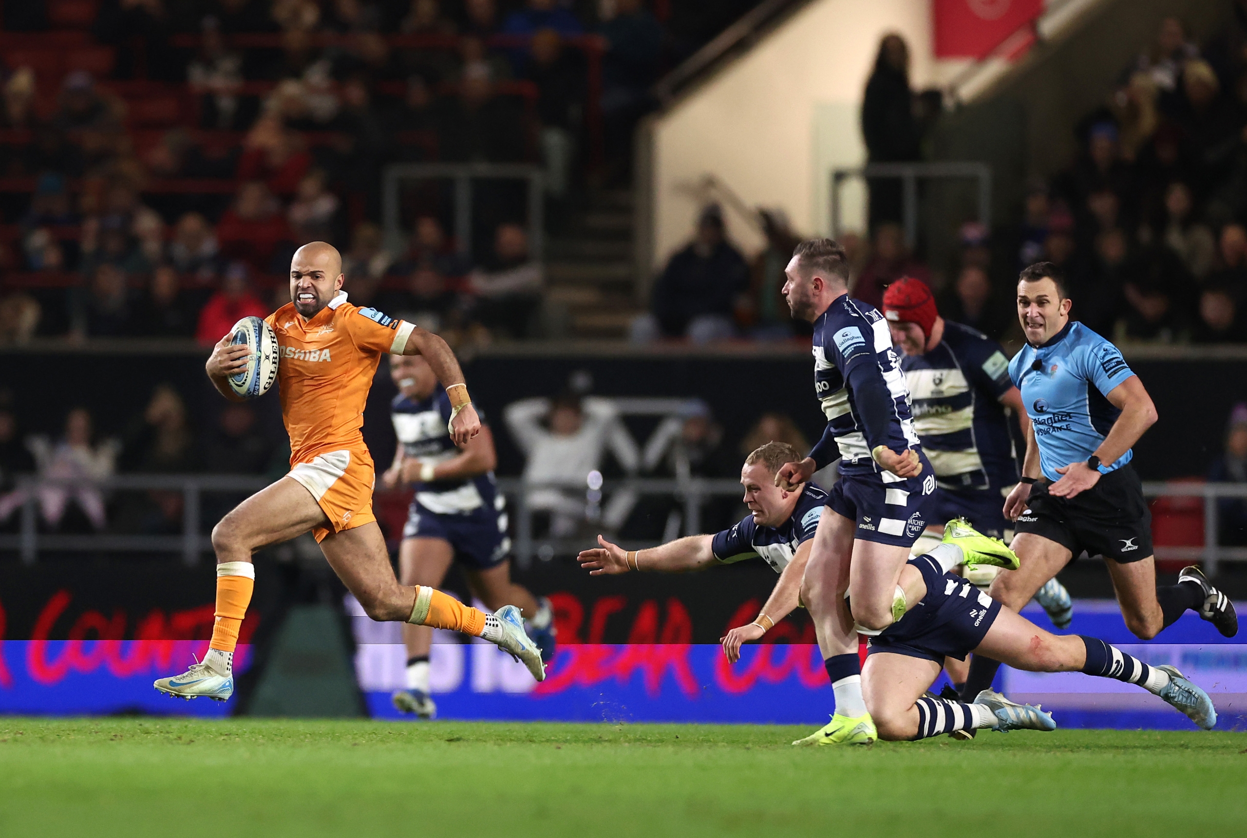 Bristol tried to restore some pride and put something on the board, but with a penalty advantage restart metres from the Sale line a miss-pass was scooped up by O’Flaherty who ran the length of the field and, after a one-two with Quirke, dived into the corner to seal the bonus point.